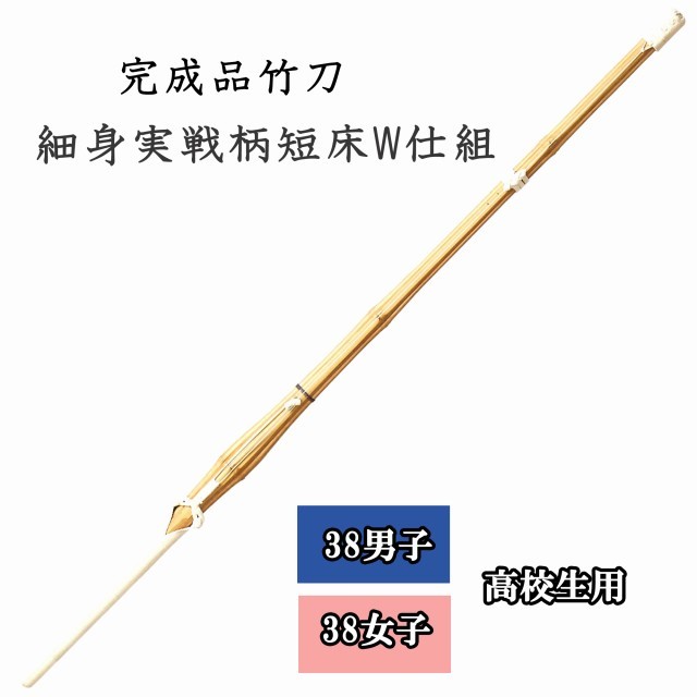 ◇剣道 細身実戦柄短床W仕組 38 男子・女子 高校生用 完成品竹刀 SSPシール付き