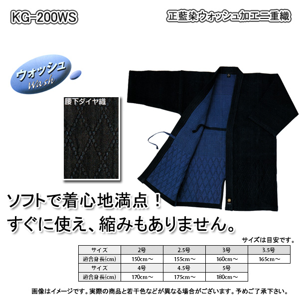 ◇正藍染ウォッシュ加工二重織 剣道着 KG-200WS 腰下ダイヤ織