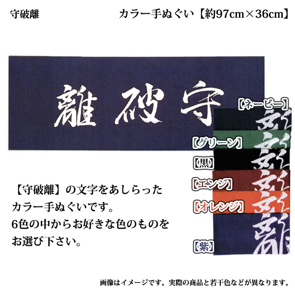 ●【ネコポス280円対応】 剣道 カラー手ぬぐい 文字「守破離」