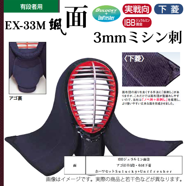 剣道 松勘 3mmミシン刺 颯 面 大学生 一般 有段者用 防具