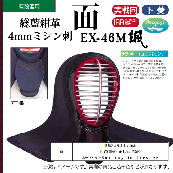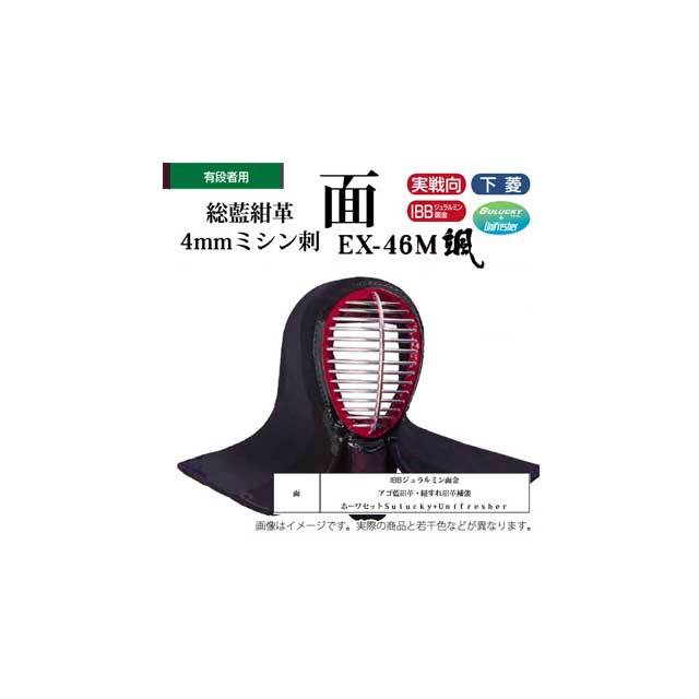 剣道 松勘 総藍紺革4mmミシン刺 面 大学生 一般 有段者用 防具