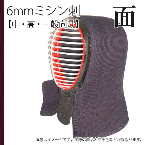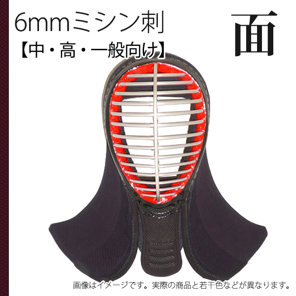 剣道 6mm ミシン刺 面 中学 高校 一般向け 面たれ短め 実戦軽量 防具